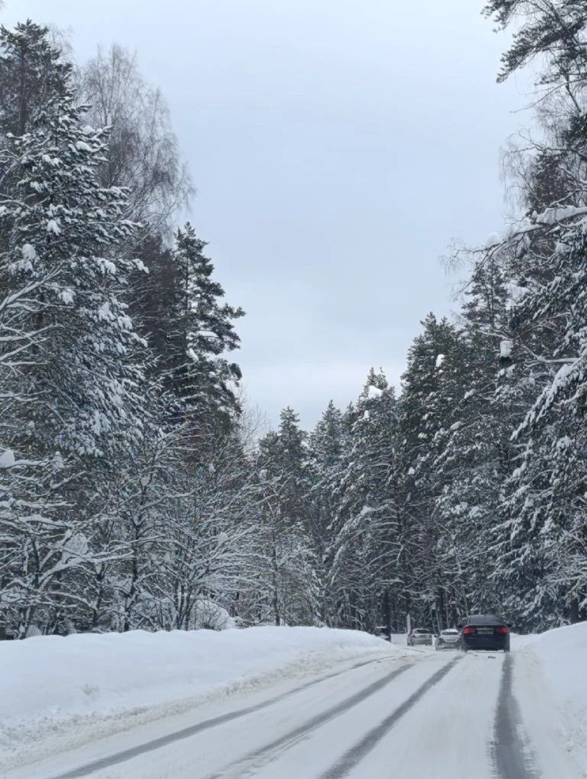 Winter road to the forest