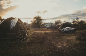 Autumn wanders alone somewhere on the edge of the village