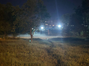 The light of the industrial zone through the forest fog