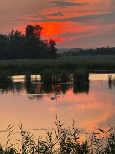 The swan in the sunset gold