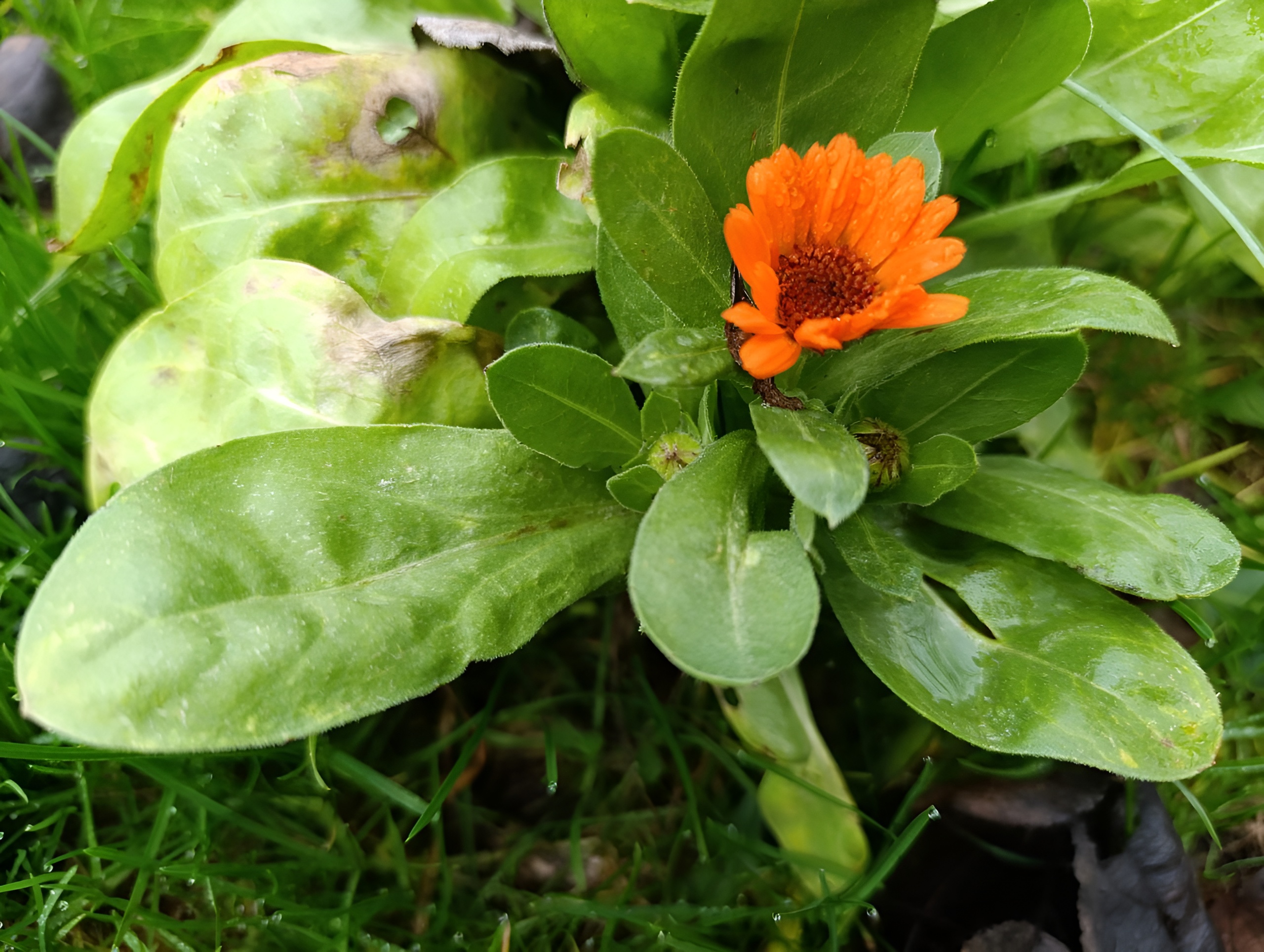 A grasshopper was sitting in the grass