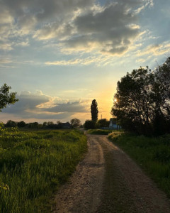 "Sunset in sunflowers"
