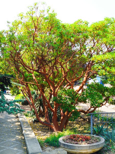 A tree without bark in the Botanical Garden