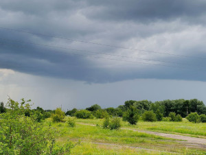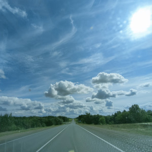 Clouds over a dirt road