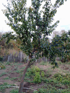 A ball tree covered with plums.