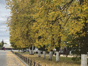 A church and a very early autumn where the leaves are