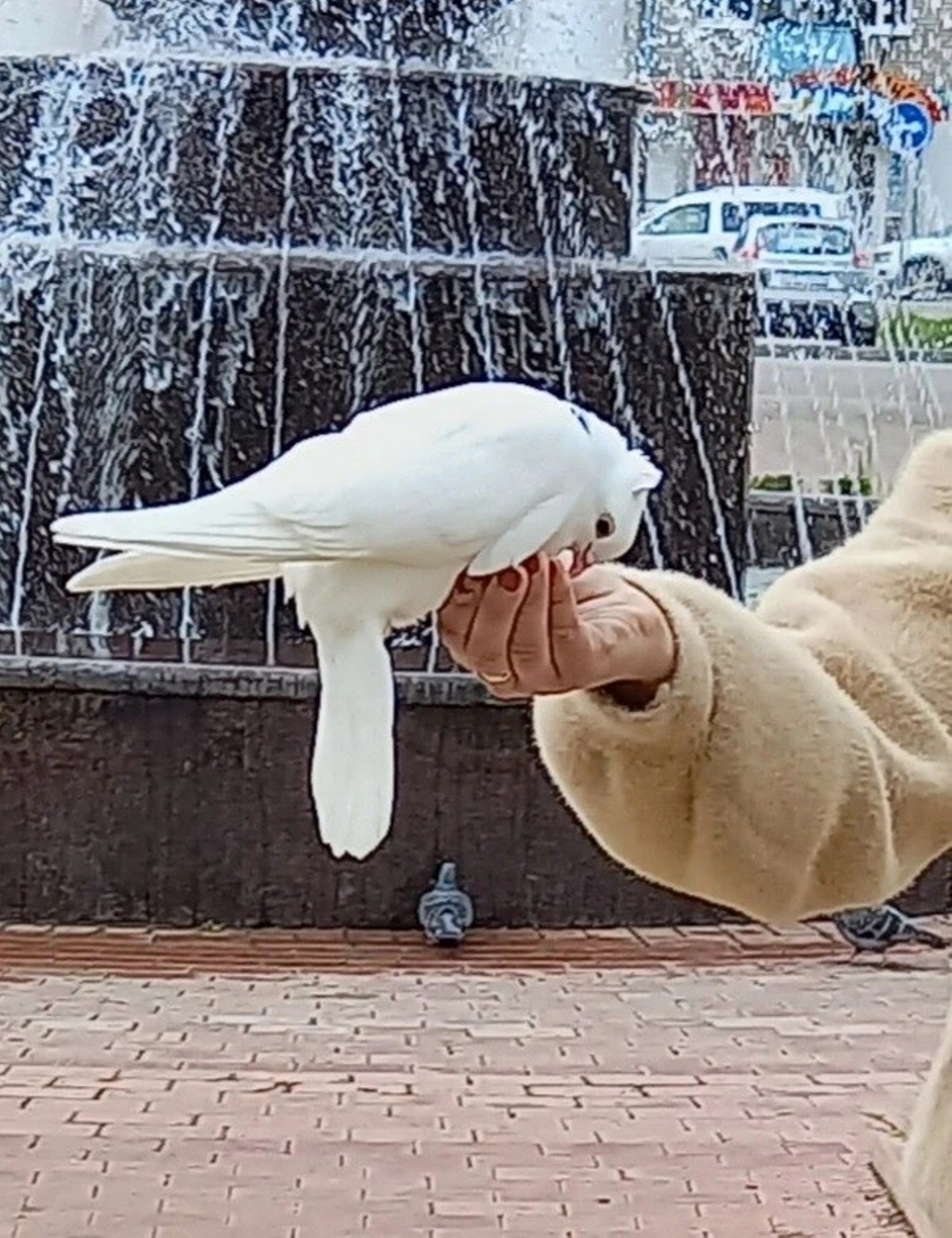 The paws are wrapped up in snow.
