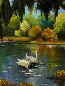 A reflection of happiness:The swan family