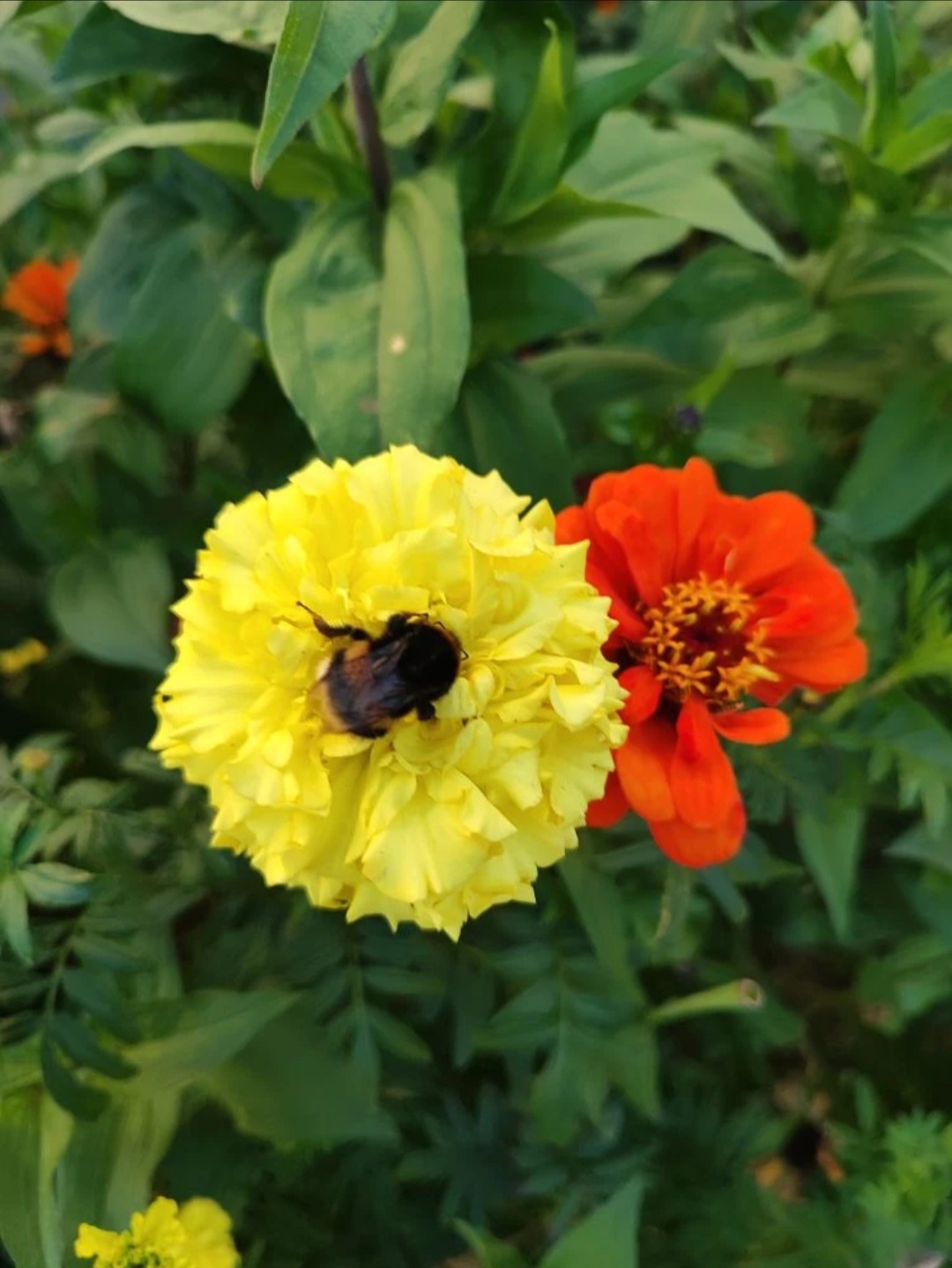 Abejorro y flores de verano