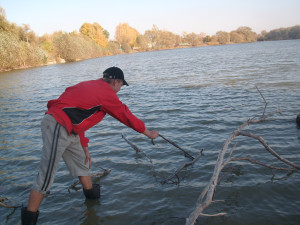 Limpieza de la costa del estanque