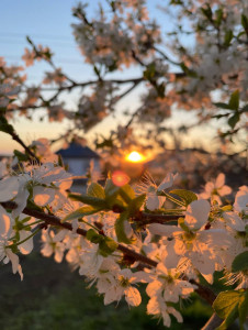 Flores de primavera en luz dorada