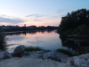 Puesta de sol de la tarde en el río Big irgiz