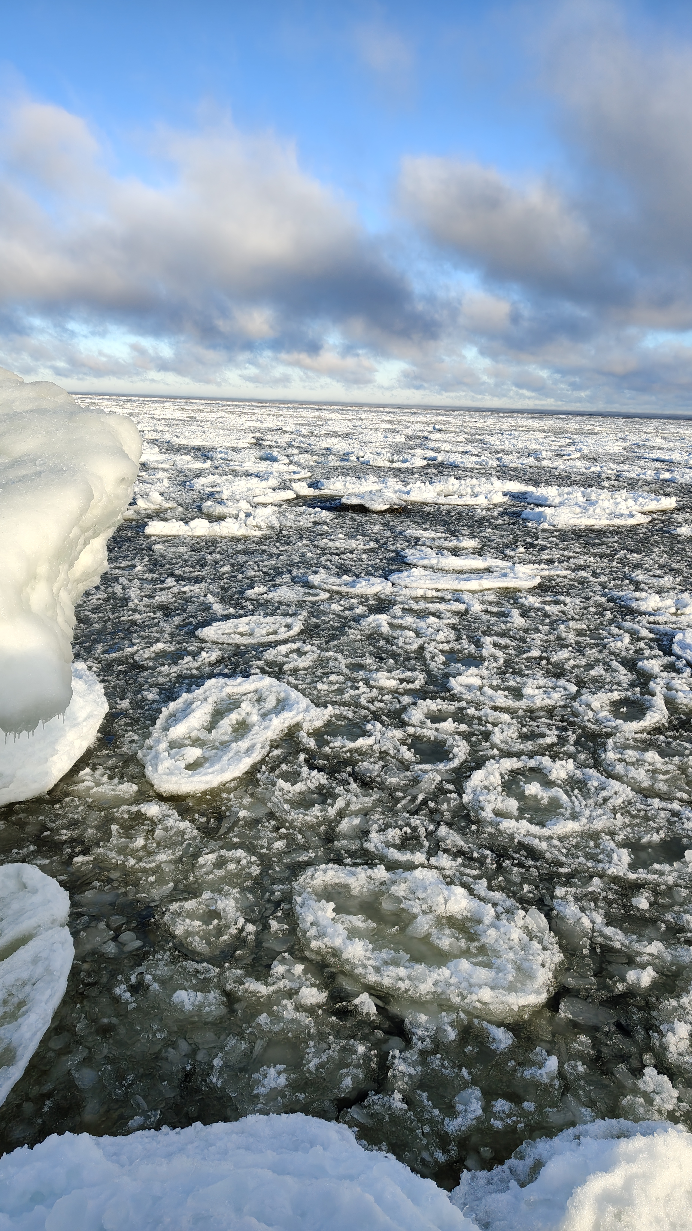 Un fenómeno raro es el hielo de panqueques