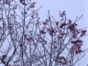 Ceniza de montaña en el azúcar de la nieve