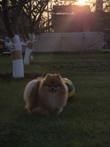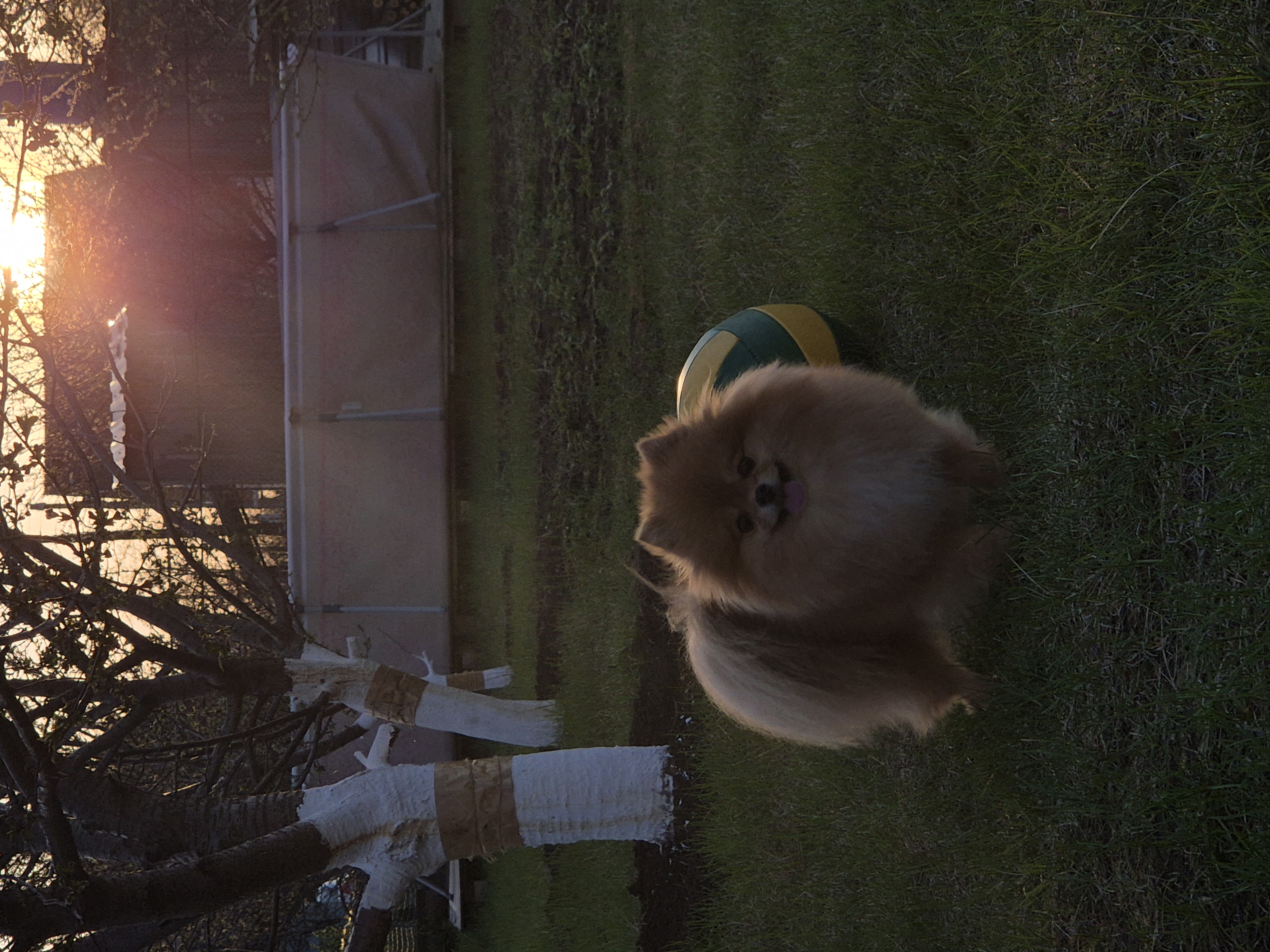 Spitz descansa en la casa de campo en primavera