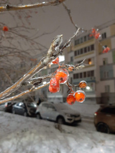 Ceniza de montaña en el hielo
