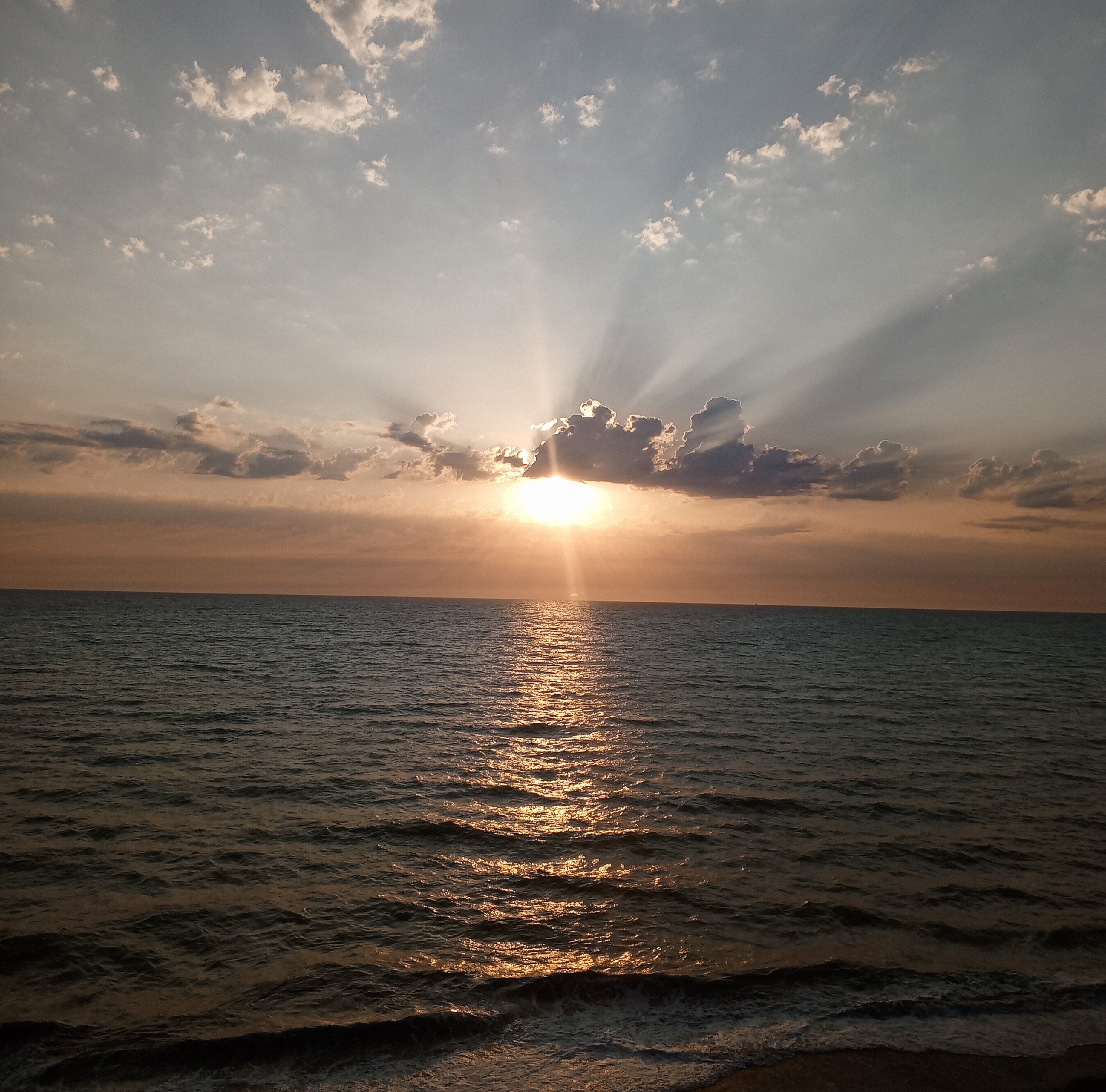 El resplandor de la puesta de sol sobre las olas