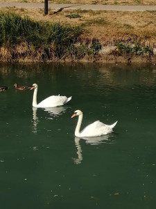 Lago de los cisnes con patos