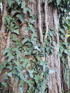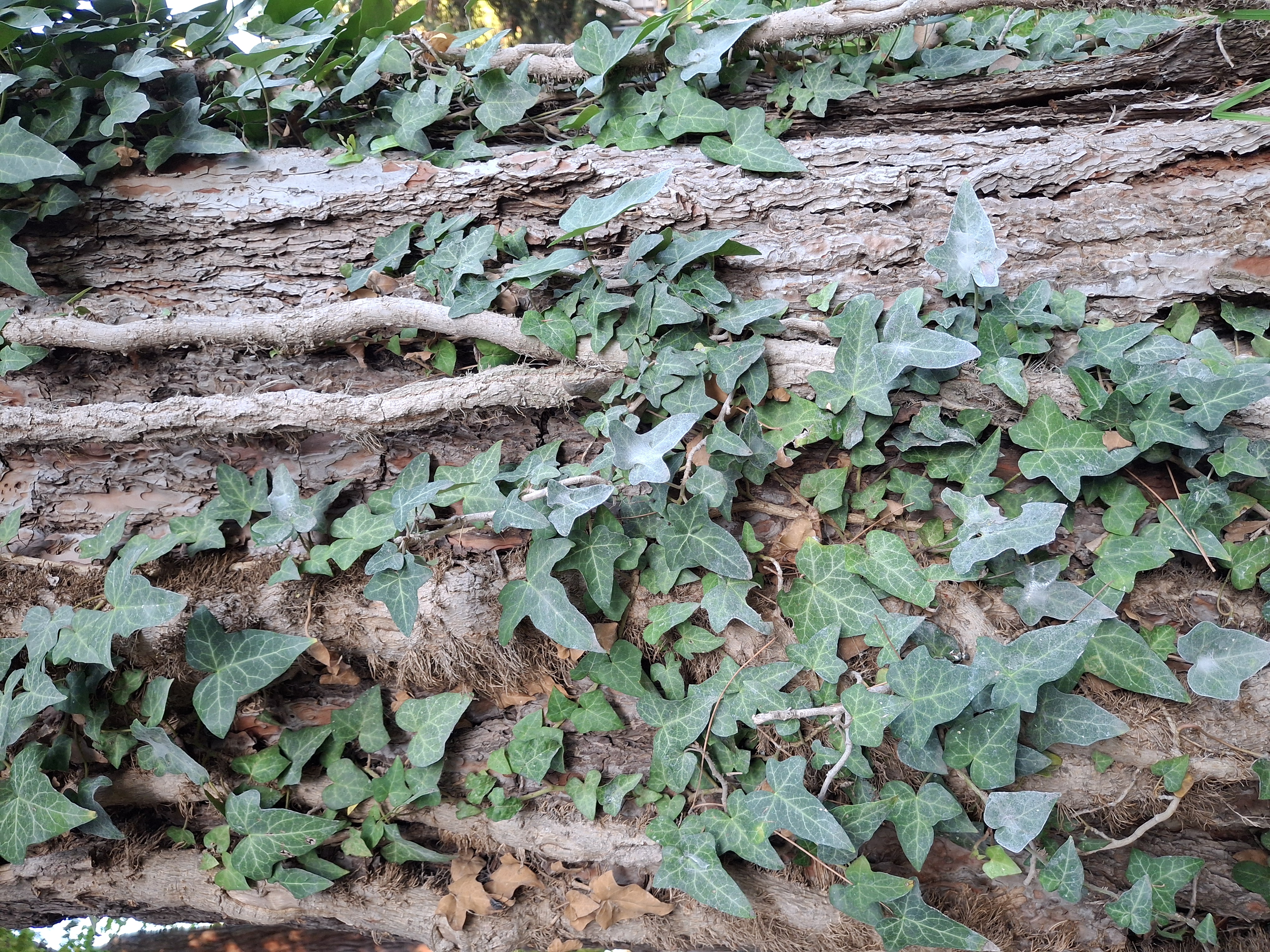 La hiedra ha entrado en el tronco del pino pitsund