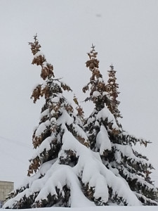 Bajo el peso de los conos y la nieve