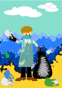 Limpieza de basura en el estanque