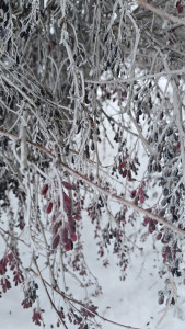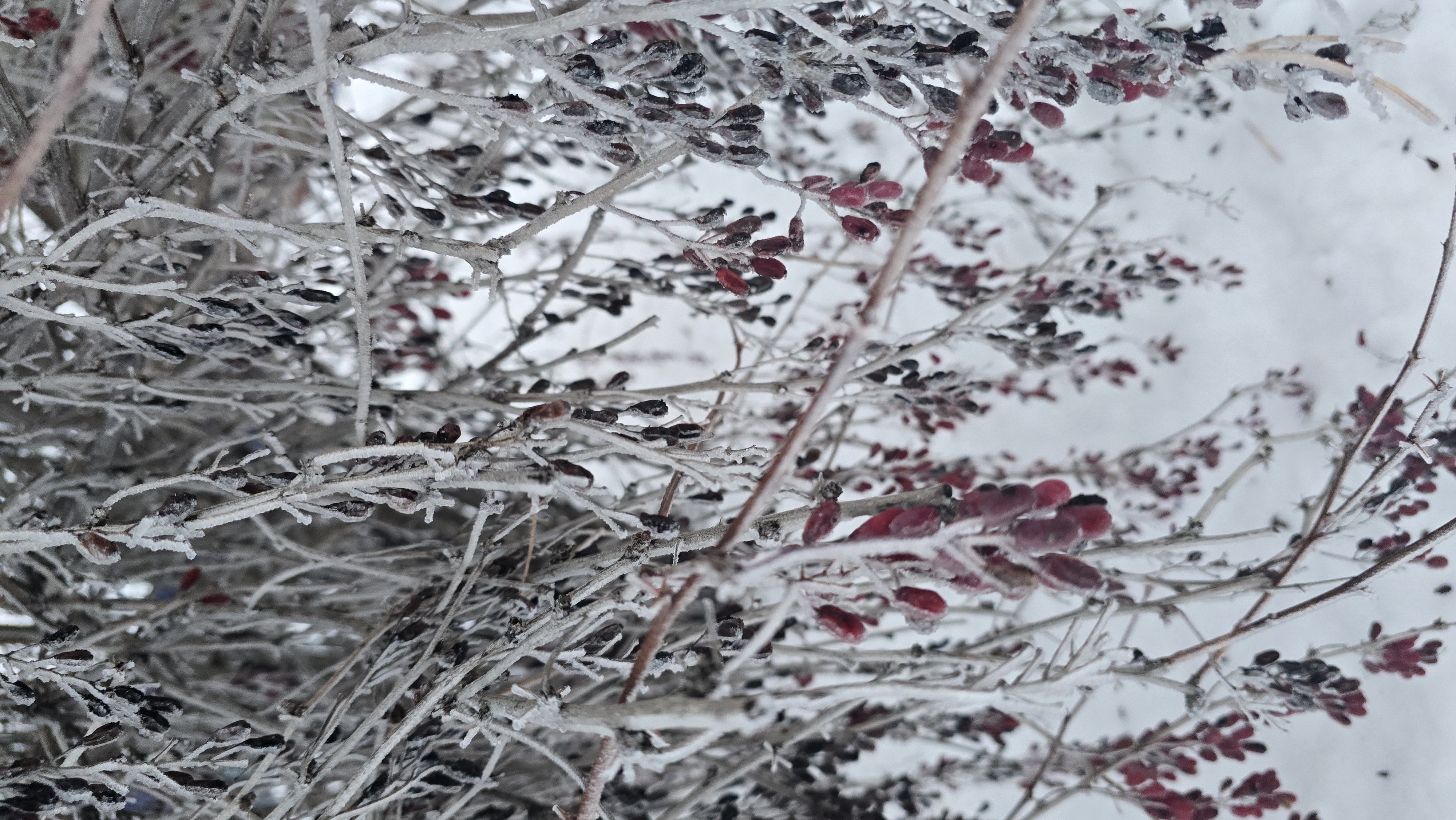 Кусты барбариса в снежной сказке