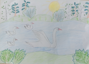Белый лебедь на пруду