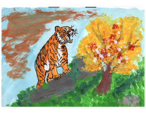 Амурский тигр в осеннем лесу