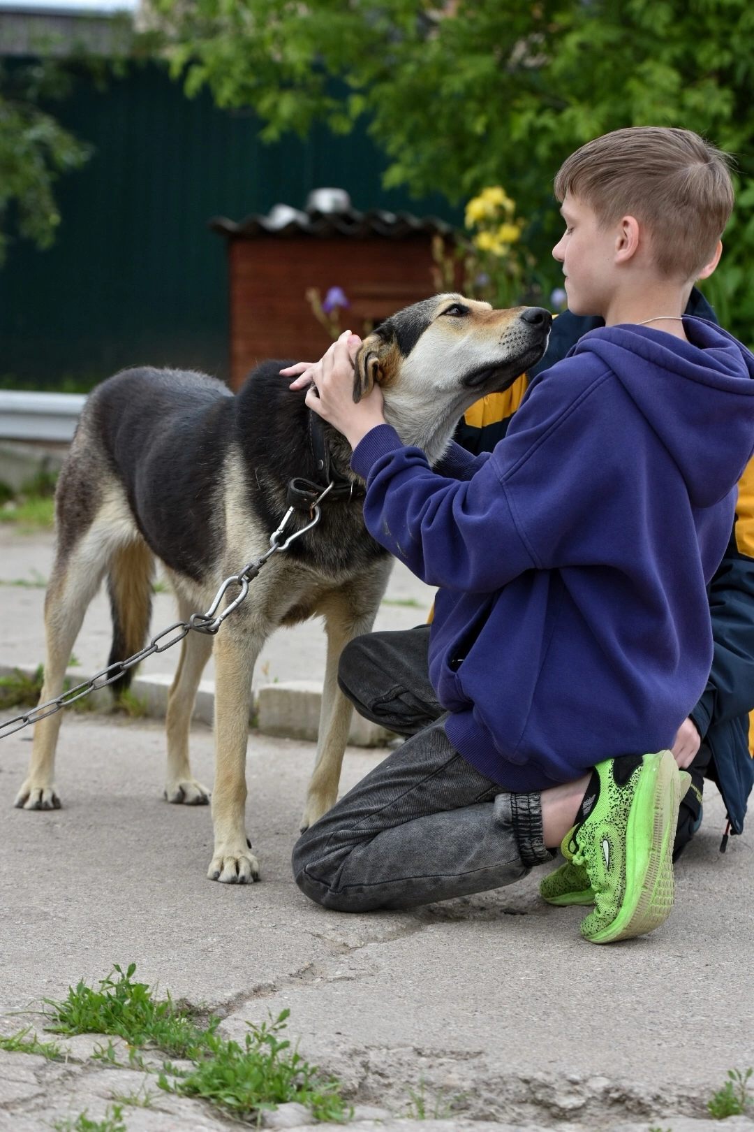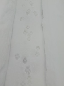 The dogs were walking along the trail