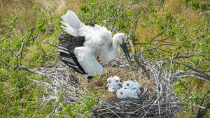 Far Eastern stork with chicks
