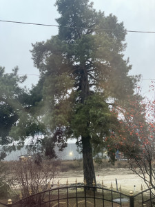 Andrey is standing behind a tree
