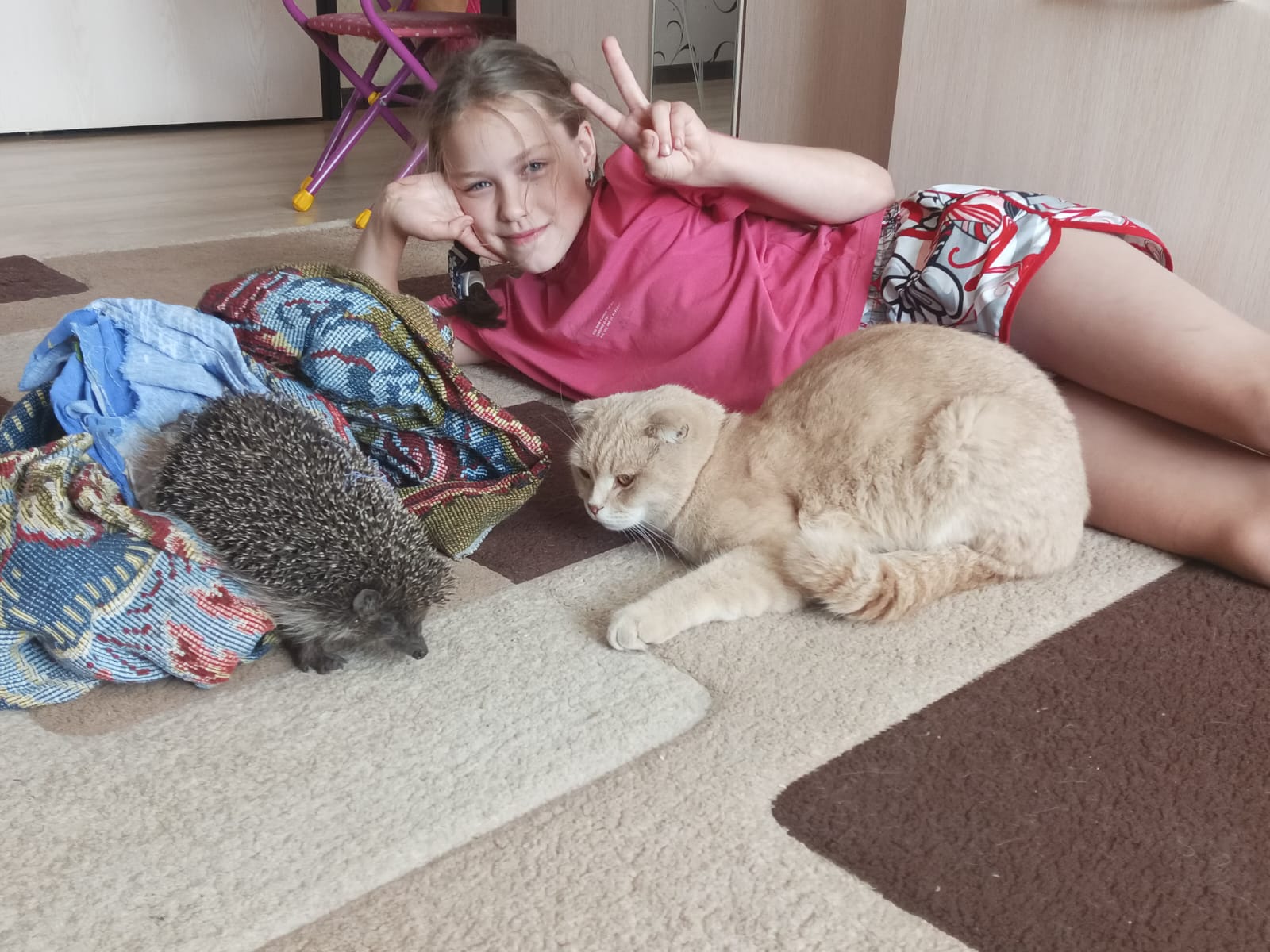 Hedgehog visiting a cat