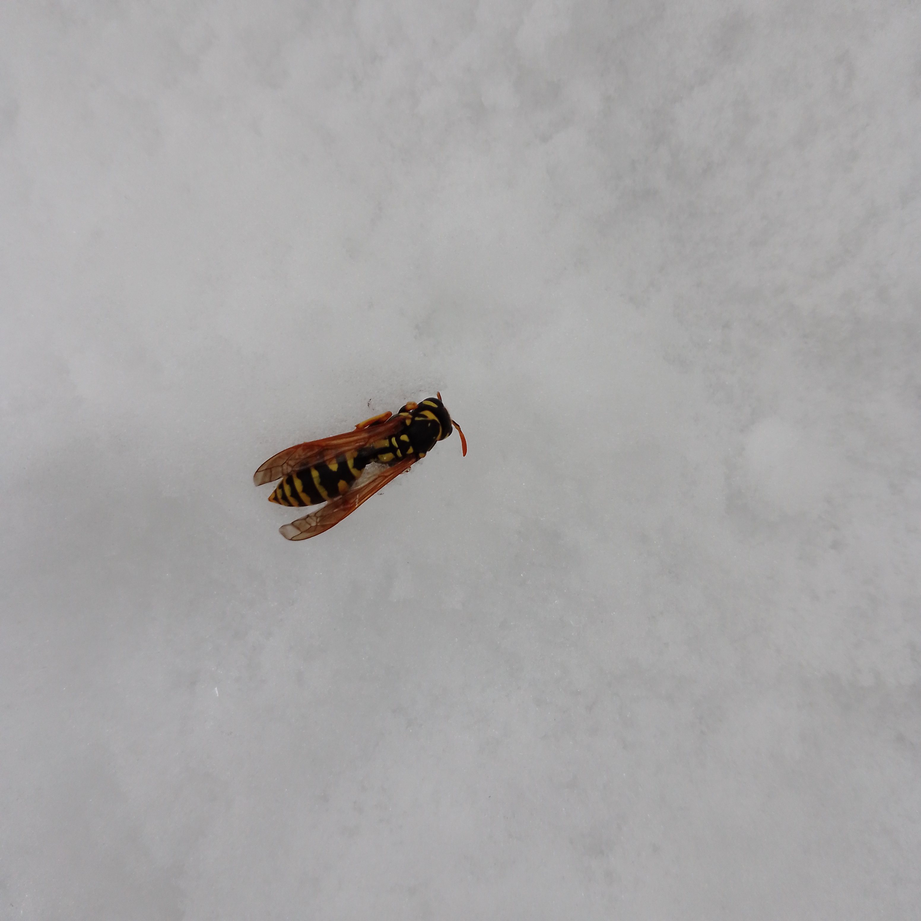 A black and yellow stroke on the white canvas of winter