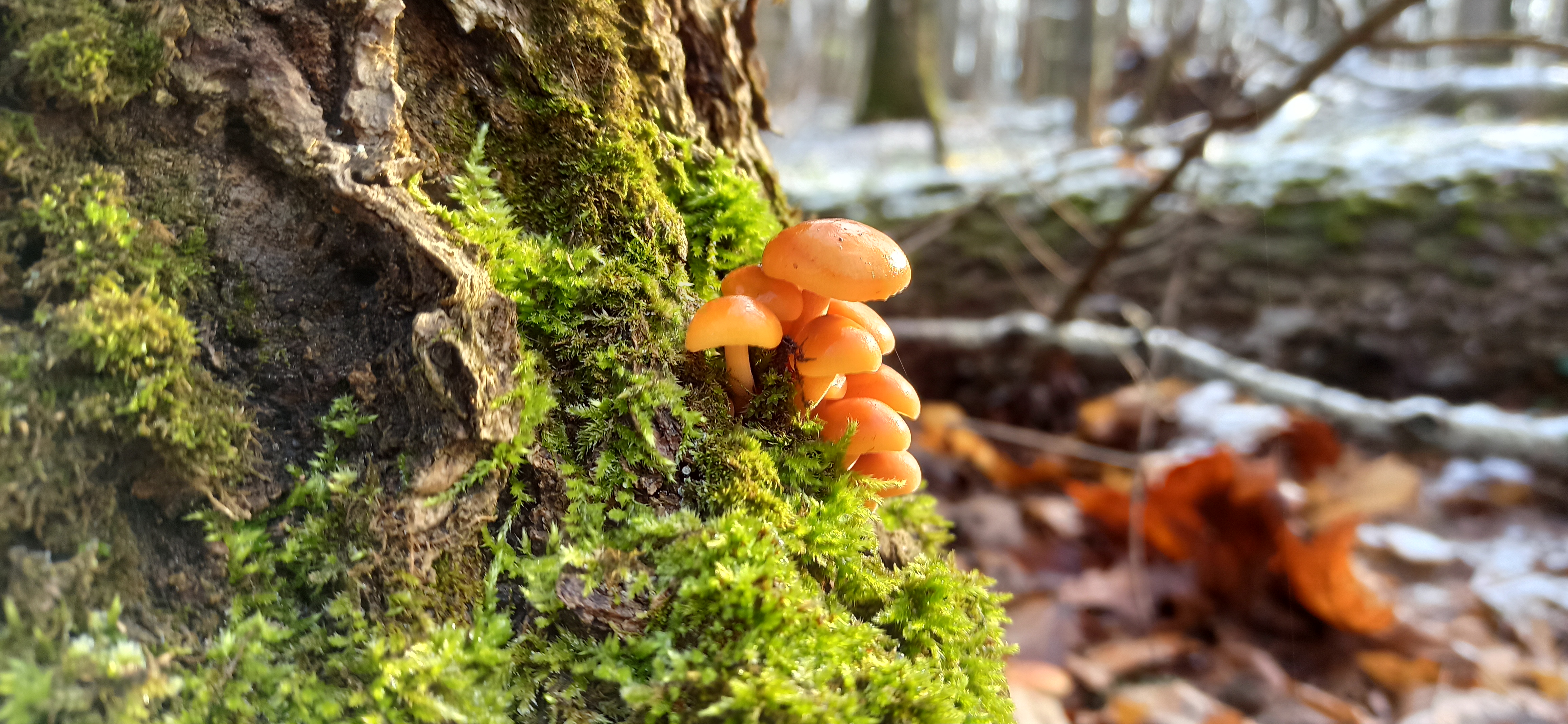 "The orange miracle among the emerald moss"