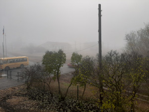 A foggy school morning