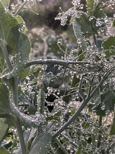 Drops of water on a pea