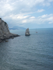A lonely sail is turning white...