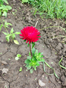 A beautiful flower among the arid soil.