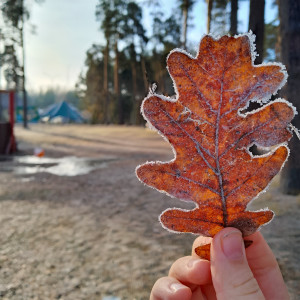 An oak leaf in frost