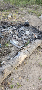 Bonfire site and trash.