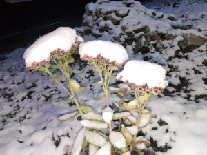 The first snow covered the flowers