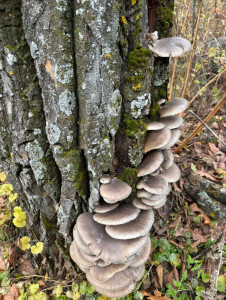 Mushroom shelter on an old tree