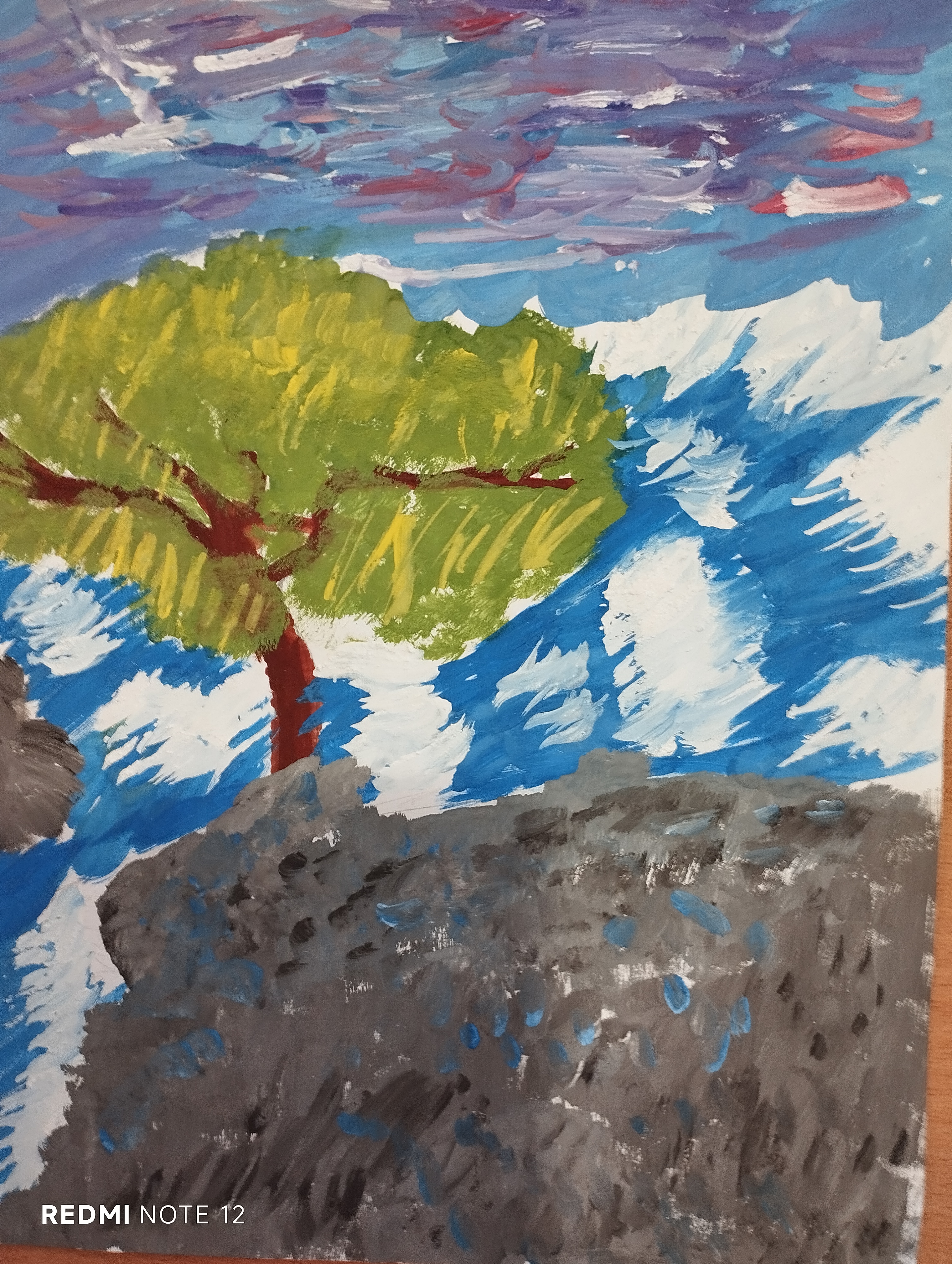 There is a pine tree at the top