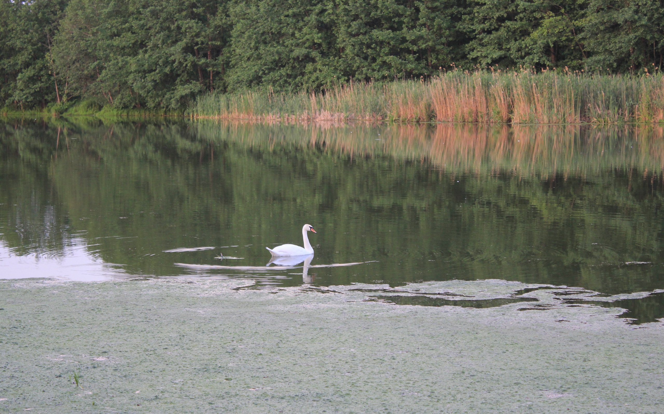 А белый лебедь на пруду
